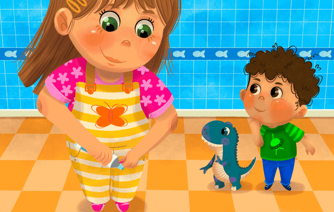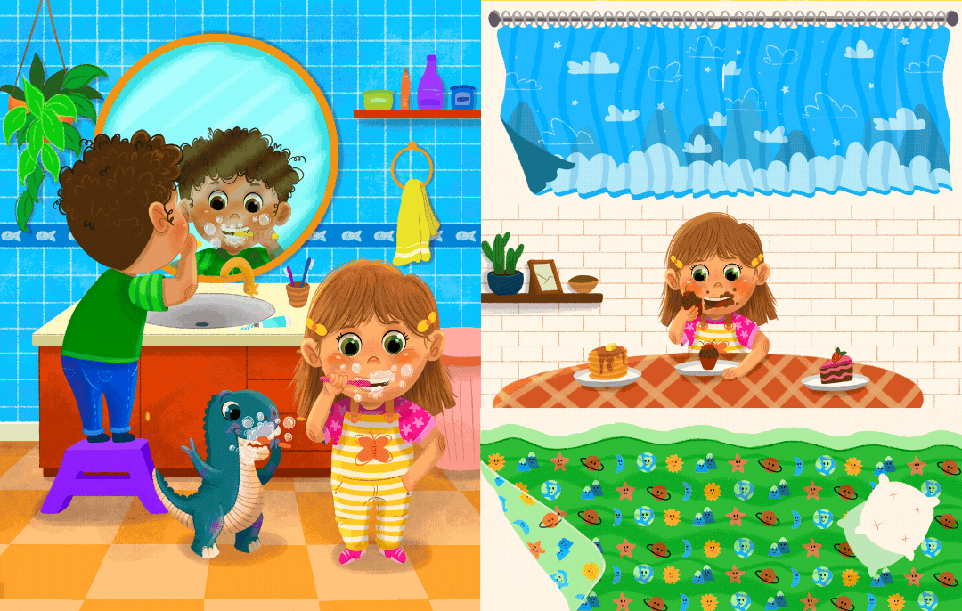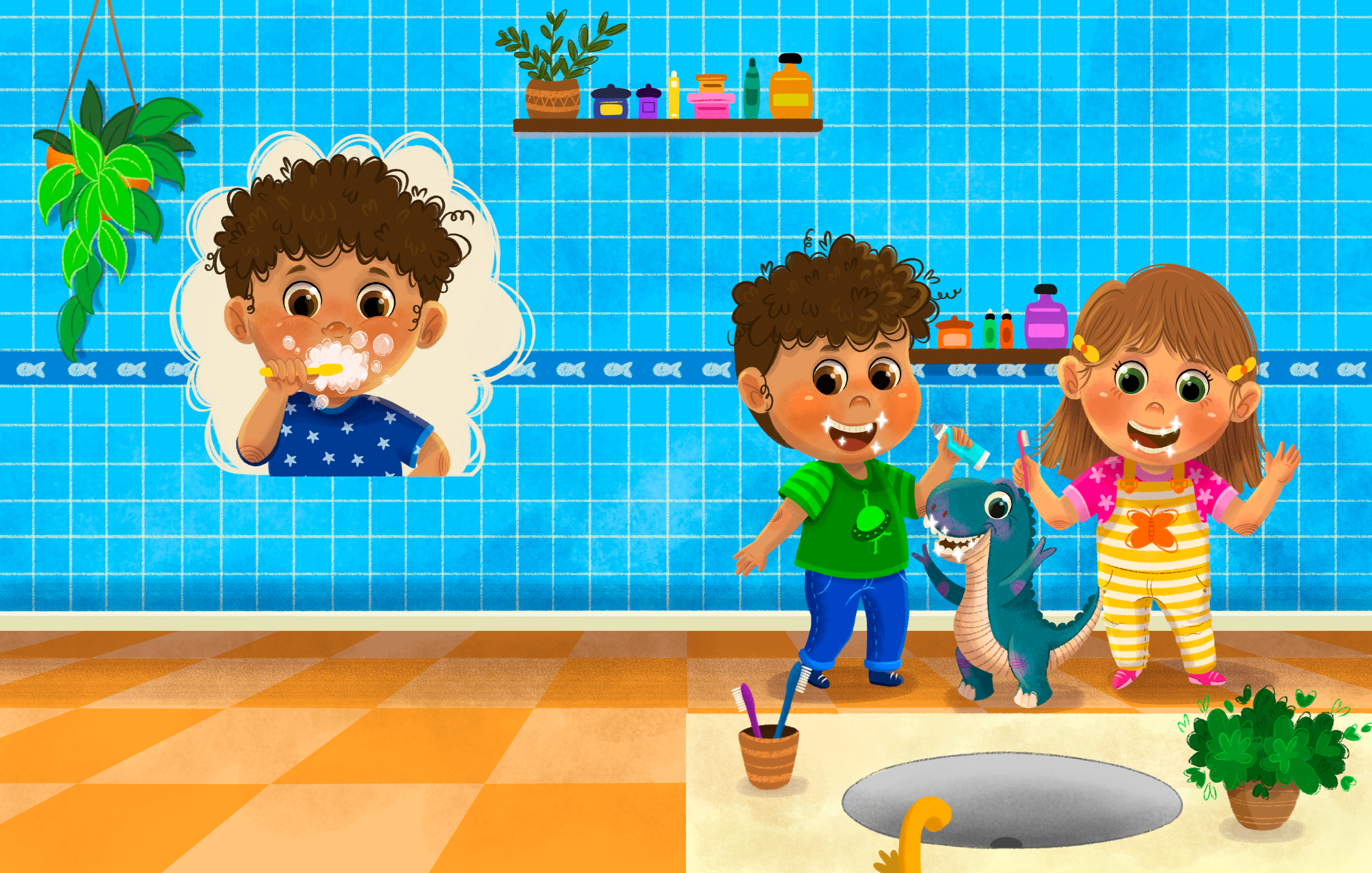 Brush, Brush, Brush - Sparkling Teeth is an interactive book filled with elements designed to teach children how to brush their teeth in a fun and engaging way. The illustrations and colors were carefully crafted to capture kids’ attention and make brushing time a joyful and special experience.